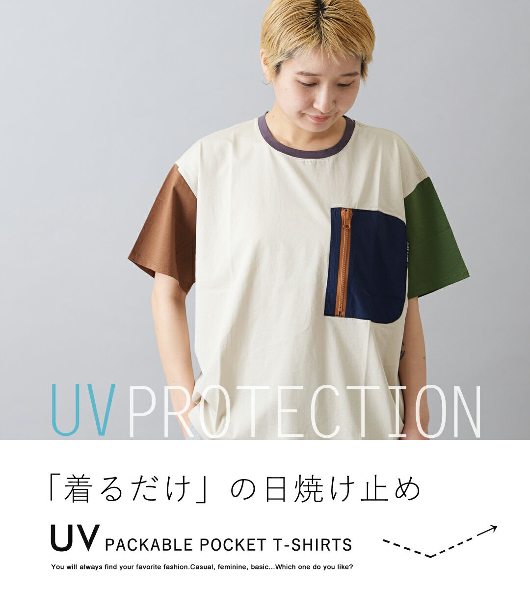 UVカット加工をほどこした可愛いポケットTシャツが登場です。