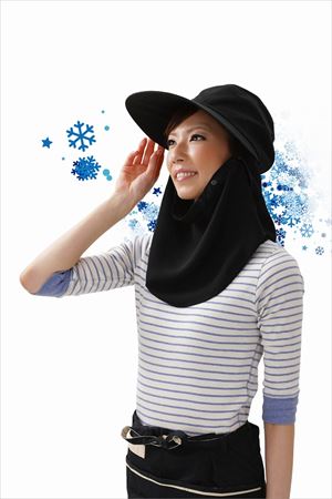 サイドに付いたボタンでシーンに応じて気になる顔や首元までしっかりカバー。
