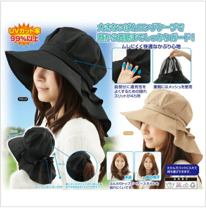 商品名 【UV対策】首筋まですっぽりロングケープ帽子 仕様 つば長さ約10cm ケープ長さ16cm 適応サイズ:頭囲:(約)56〜58cm 素材・成分:ポリエステル100% 製造国:中国 配送について こちらの商品はメーカーより直送いたいします。